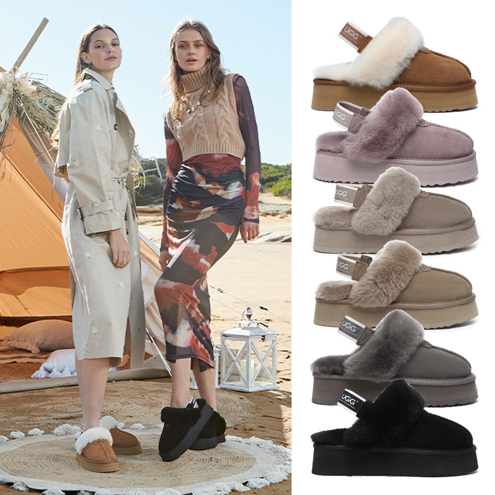 [빠른무료배송] 호주정품 럭스오즈 플러피 플랫폼 탈부착 밴딩 어그 슬리퍼 (굽5cm) LUXOZ UGG LU002