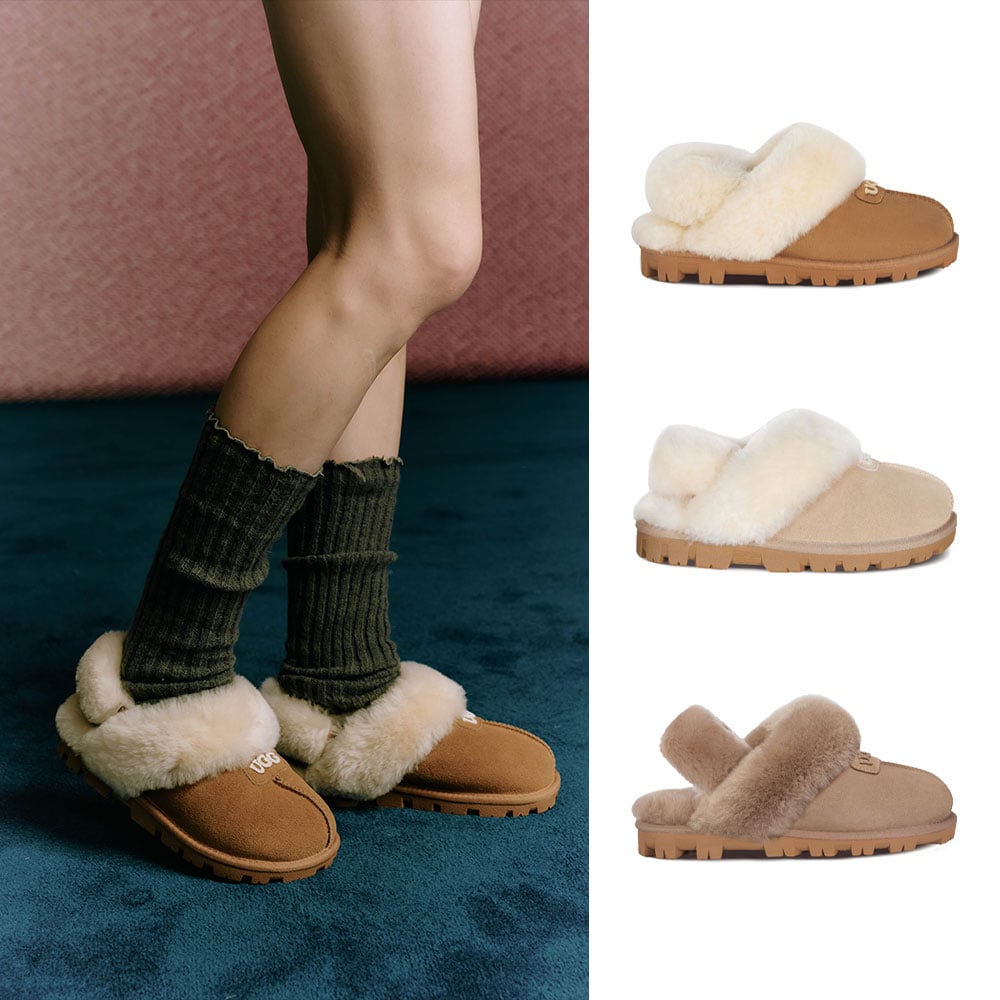[무료배송] 호주정품 오즈라나 에스텔라 로고 시어링 오픈 슬리퍼 (굽 2cm) OZLANA UGG OZ3010